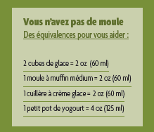 Pour la congélation, appliquez un enduit antiadhésif ou de l’huile végétale dans les moules pour éviter que les aliments ne collent.